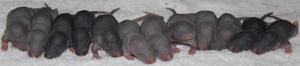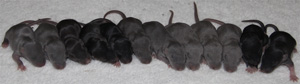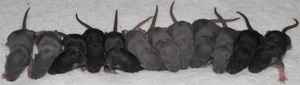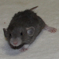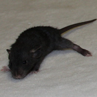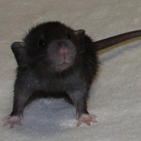 Purpose: Pass on Mystique and Ace's amazing, kissy and cuddly shoulder rat temperaments and good health. Improve overall structure and ears (dumbo). Develop the variegated markings and rex coat. Produce babies which carry blue.