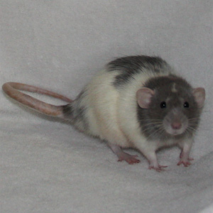 Temperament: The sweetest little rat, she loved being on my shoulder the moment I got her. Gives lots of kisses and enjoys cuddling her humans. Gets along well with her cage mates though tries to be the boss.